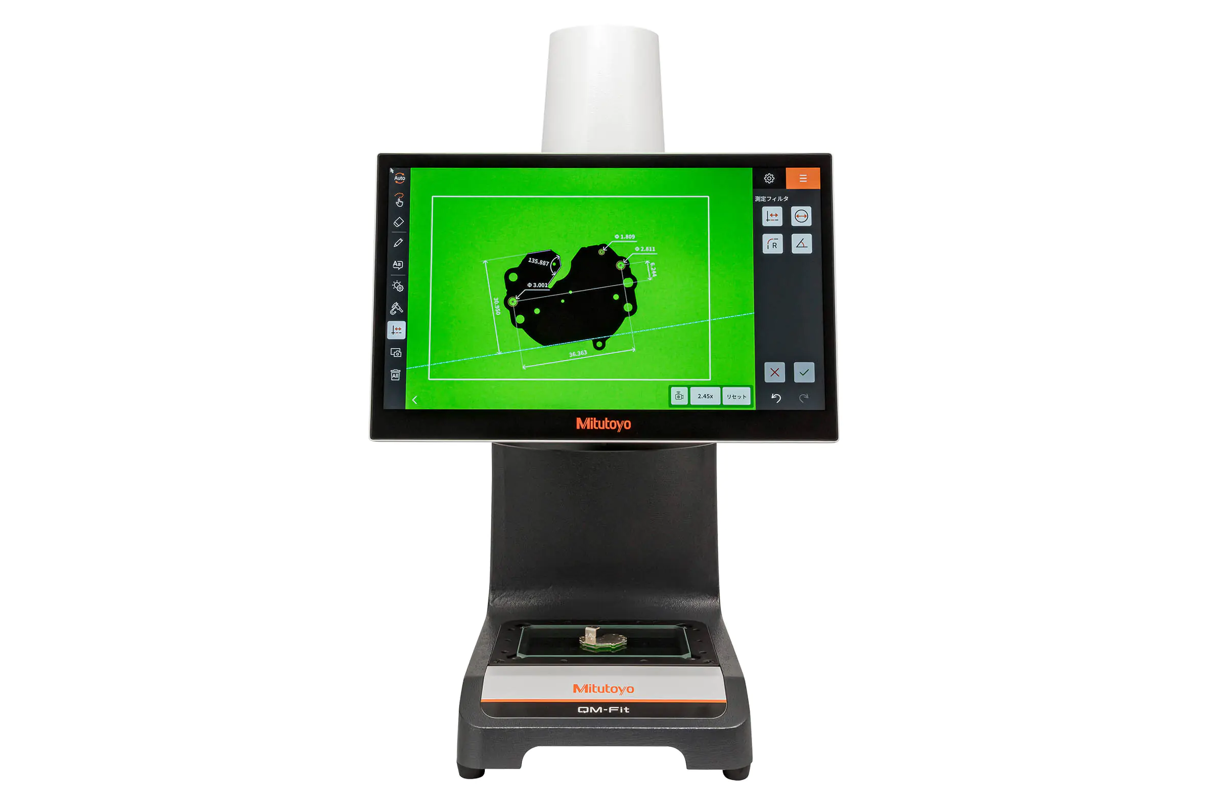 QM-Fit effektiviserer berøringsfri dimensionsinspektion med intelligent genkendelsessoftware, et højopløseligt 20 megapixel kamera og intuitiv touchskærmsvejledning, som enhver kan betjene.